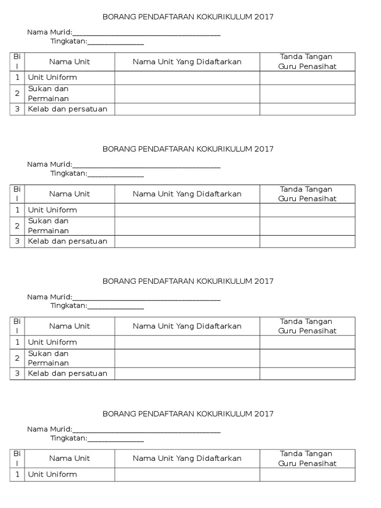 Setiap permohonan mestilah disertakan perincian kerja beserta kos dan gambar untuk rujukan. BORANG PENDAFTARAN KELABPERSATUAN UNTUK TINGKATAN 1 MURID BARU ARAHAN. Salinan guru tingkatan copy 2 3.
